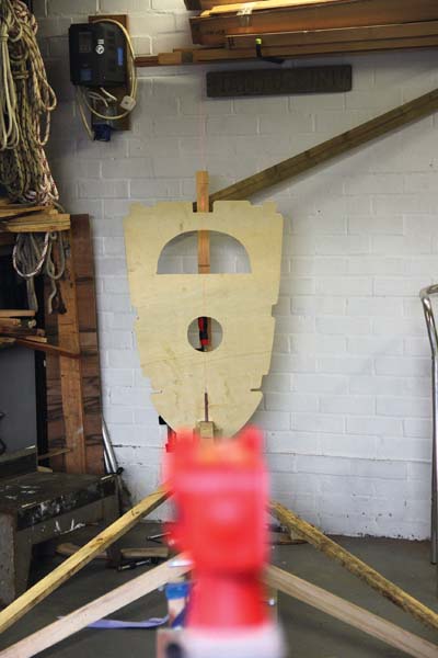 A laser level, set on the stern to shine on the stem, gives a datum for setting up frames