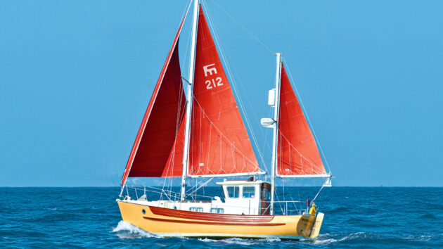 Her 50% ballast ratio and modest sail area mean that reefing is rare, but sailing under jib and mizzen is a good option in heavy weather.