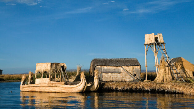 500 years ago, to escape frequent Inca invasions, the indigenous Uros people of Lake Titicaca began developing floating islands made of totora reeds and submerged scaffolding.
