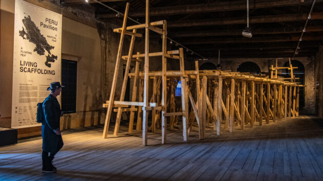 The Peruvian Pavilion, titled ‘Living Scaffolding’ at the 2025 Venice Architecture Biennale, curated by Carlo Ratti. Credit: Simone Padovani / Getty Images.