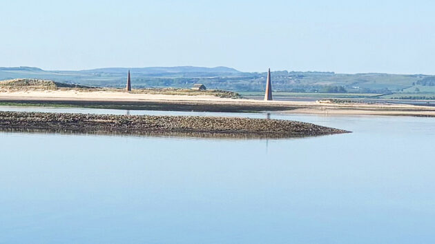 The Old Law beacons off Holy Island provide a helpful navigational fix. Photo: Frank Sibly.