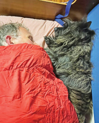 Bert, the ship’s dog, in skipper’s berth. Photo: Frank Sibly.