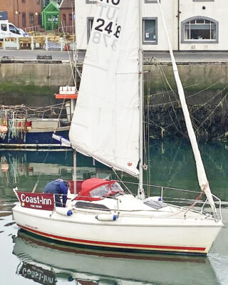 Coast-Inn, Frank’s Etap 22i trailer sailer in Eyemouth Harbour, with one reef set, ready for a moderate wind forecast. Photo: Frank Sibly.
