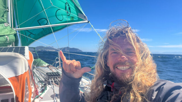 Christian Sauer on his ARGO, sailing past the Cape of Good Hope, with three oceans in the wake. Credit: Christian Sauer / MGR2025.