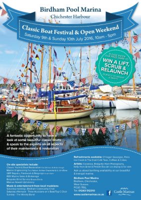 Birdham Pool Marina Classic Boat Festival/Open Weekend Chichester Harbour on Saturday 9th and Sunday 10th July 2016. For further information call 01243 512310