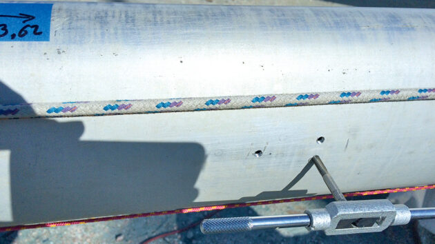 The holes on the mast – as well as the ones on the aluminium steps – were coated with Duralac, which also acts as a medium-strength thread locker.