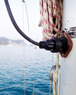 Spotlight plug fitted in the mast socket. Photo: Nicholas Koligiannis.