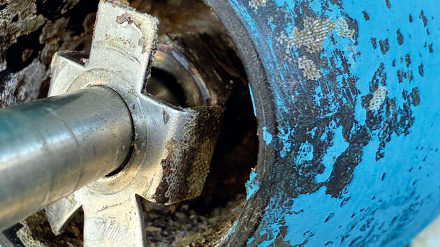 Next, carefully slide the new anode on to the spline and screw this on. Now comes the part you must take the most care with; the splines of the shaft, and above the splines (where the rope cutter fits around the shaft) need to be greased.