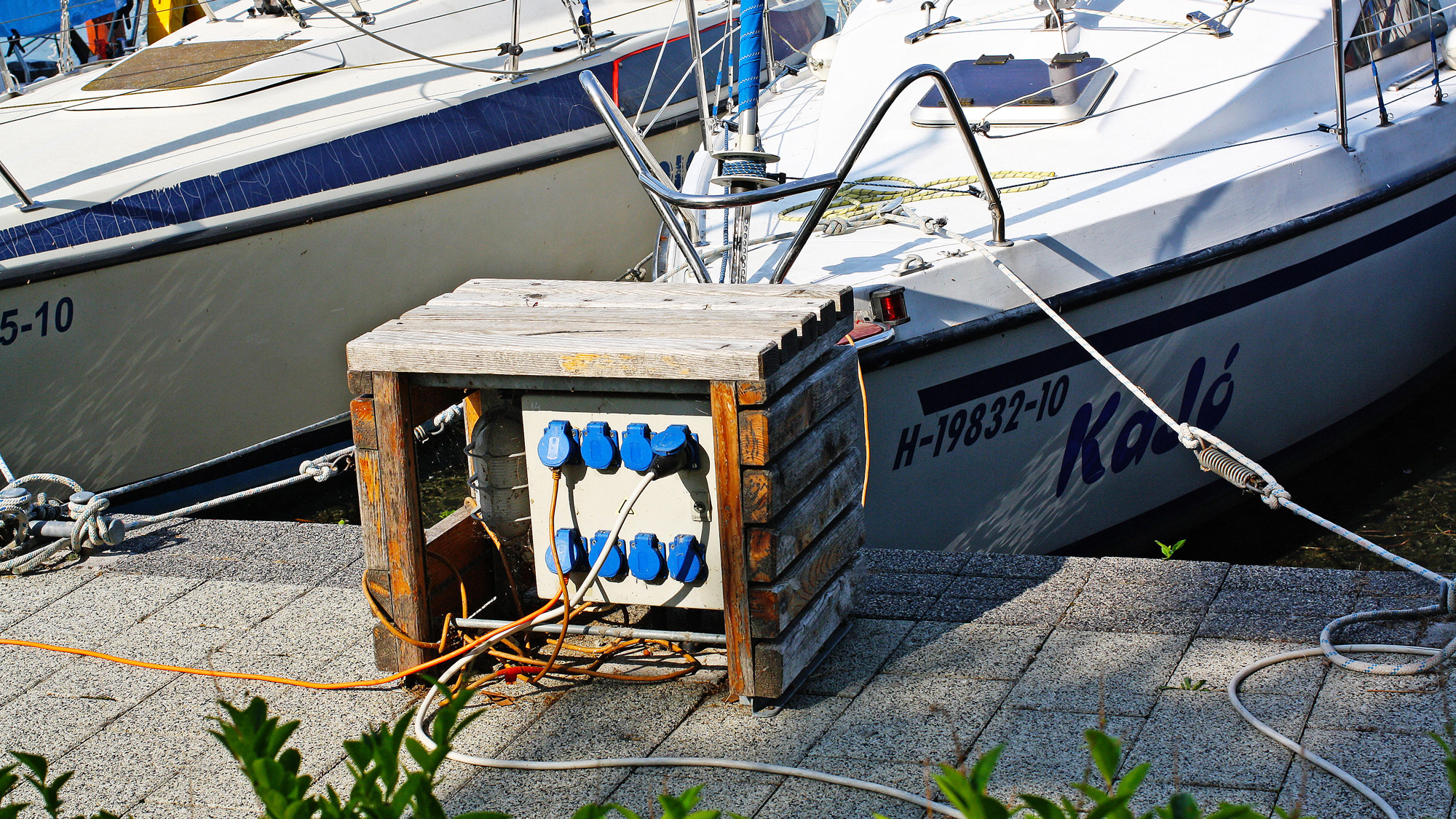 When we met her on the pontoons, she was having new batteries installed in the Hallberg-Rassy 340.