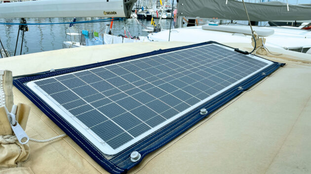 One of my more experienced friends (eight Atlantic crossings) taught me the best place to have solar panels is on the handrails, so you can easily adjust the angle to maximise the harvest, and they’re easily stowable in marinas.