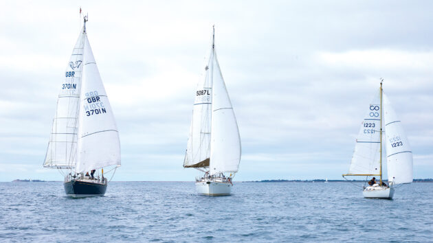 [LEFT] UPWIND DISPLACEMENT – Upwind, newer, more efficient hull shapes aid their ability to point when sailing upwind. [CENTRE] LIGHT AIRS DISPLACEMENT – In very light winds, some modern boats with large wetted surface areas and modest sail plans can be slower downwind than older, smaller boats. Photo: Graham Snook.