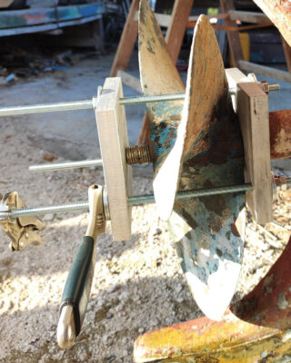 Not knowing when exactly I’d come to do the work and also not knowing if I’d be able to borrow it when needed, I discarded the idea of trying to borrow a propeller puller from someone on the island.